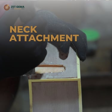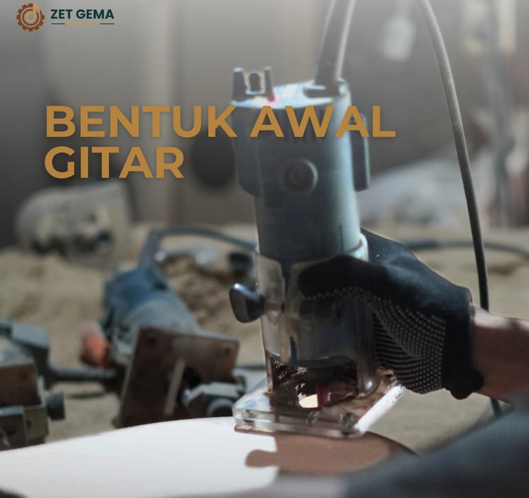 Tahap pemotongan body dan neck merupakan proses pembentukan awal struktur utama gitar setelah kayu melalui proses pengeringan. Pada tahap ini, kayu yang telah siap diproses dibentuk sesuai desain dan spesifikasi model gitar yang akan diproduksi.